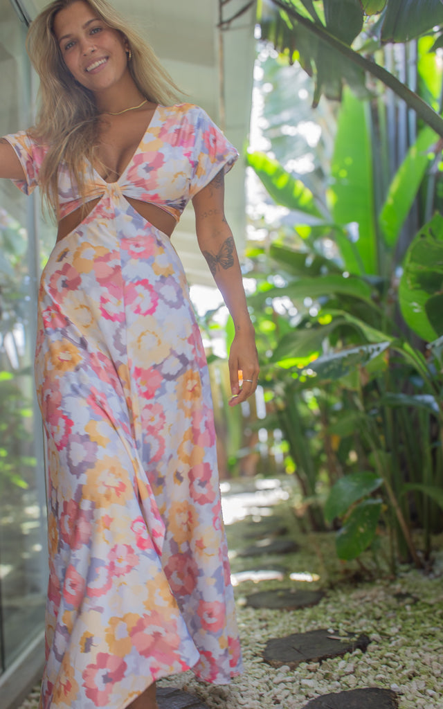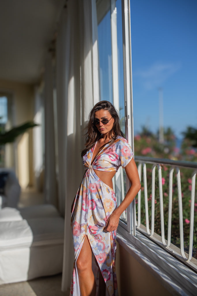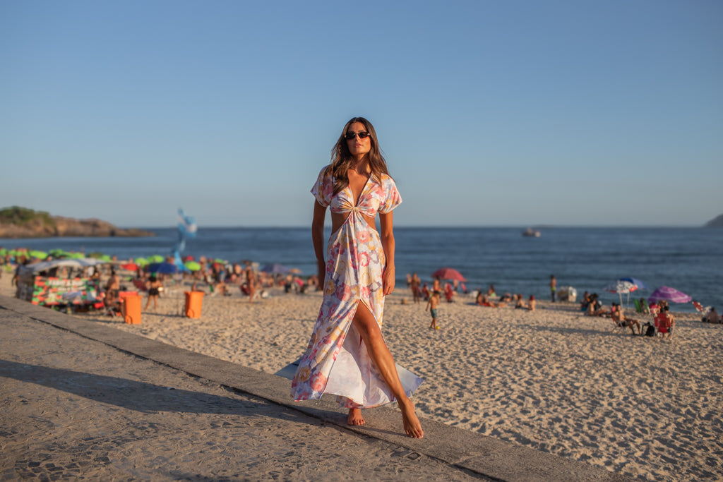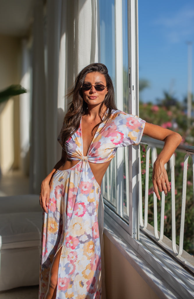 Decote em V, com recortes na cintura e saia longa, esta peça é super versátil e moderna.